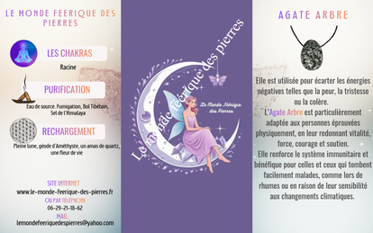 Retrouvez les vertus de l'Agate Arbre, si vous voulez avoir la fiche explicative, les chakras, la purification et rechargement.